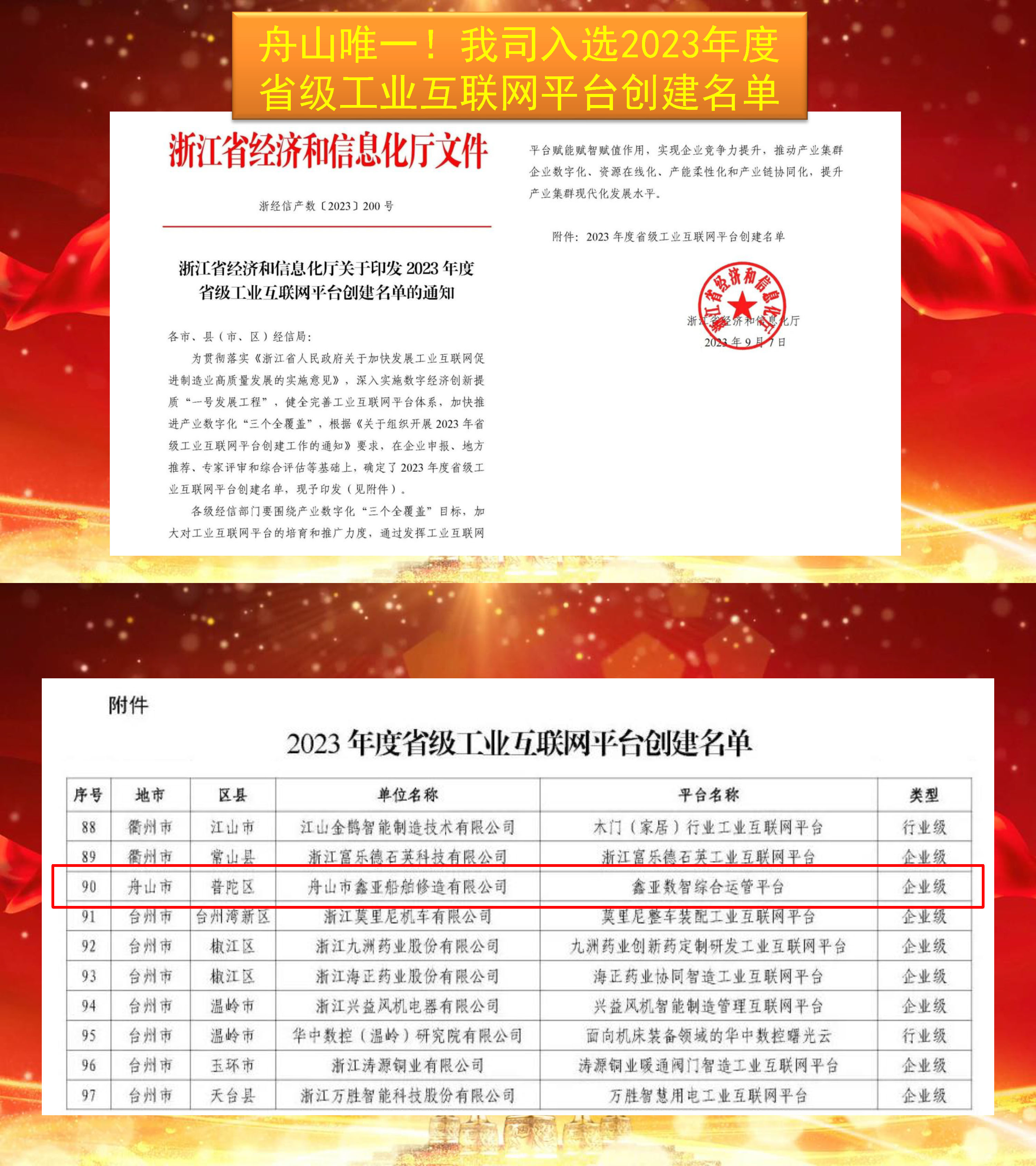 舟山唯一!我司入選省級(jí)工業(yè)互聯(lián)網(wǎng)平臺(tái)創(chuàng)建名單
