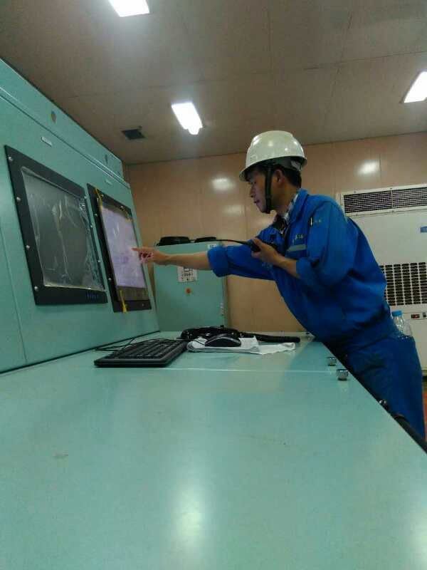 推開集控室的門就被一個(gè)人的氣場所吸引,身材一點(diǎn)兒都不魁梧但給人絕對(duì)精悍的感覺,他就是輪機(jī)調(diào)試員梁桂明。畢業(yè)兩年,早已不再是那個(gè)跟在師傅身后的懵懂少年,現(xiàn)獨(dú)立負(fù)責(zé)BS09船的遙控閥、液位遙測、壓載水等項(xiàng)目的調(diào)試工作。從艏部空艙到貨艙、壓載艙、管弄、邊空艙……據(jù)說每一個(gè)艙室都是體力活,當(dāng)被問到累不累的時(shí)候他卻笑著說“不累,就當(dāng)鍛煉身體了?!?