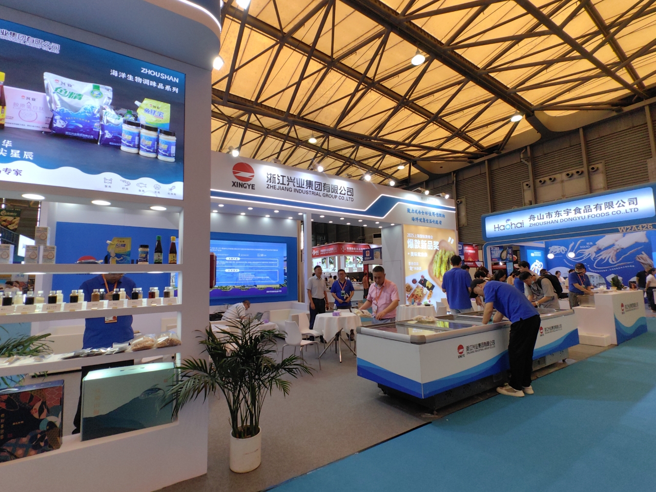 陳國(guó)強(qiáng)副會(huì)長(zhǎng)先后走訪了多家來(lái)自舟山的漁業(yè)企業(yè)展位,深入了解企業(yè)在產(chǎn)品研發(fā)、市場(chǎng)拓展、出口貿(mào)易等方面的最新動(dòng)態(tài),并與協(xié)會(huì)理事單位浙江興業(yè)集團(tuán)有限公司的展位負(fù)責(zé)人進(jìn)行了深入交流。興業(yè)集團(tuán)本身實(shí)力雄厚,是國(guó)家高新技術(shù)企業(yè),農(nóng)業(yè)產(chǎn)業(yè)化國(guó)家重點(diǎn)龍頭企業(yè),全國(guó)農(nóng)產(chǎn)品加工業(yè)出口示范企業(yè)。興業(yè)集團(tuán)已連續(xù)3年參加上海漁博會(huì),通過(guò)這一國(guó)際性平臺(tái),興業(yè)集團(tuán)成功吸引了大量國(guó)內(nèi)外采購(gòu)商的關(guān)注,獲得了穩(wěn)定的訂單增長(zhǎng),拓展了客戶資源,提升了品牌知名度。展會(huì)期間,興業(yè)集團(tuán)展示了多款優(yōu)質(zhì)水產(chǎn)品及創(chuàng)新加工產(chǎn)品,吸引了眾多專業(yè)買(mǎi)家駐足洽談,現(xiàn)場(chǎng)氣氛熱烈。