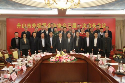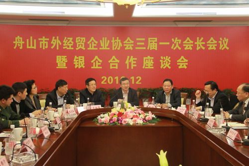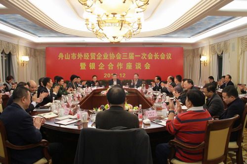 2016年12月20日下午,舟山市外經(jīng)貿(mào)企業(yè)協(xié)會在朱家尖和潤集團總部召開三屆一次會長會議暨銀企合作座談會,市政府副市長黃國華出席會議并作重要講話,出席會議還有:市商務局局長干松章、副局長盛惠敏、舟山市出入境檢驗檢疫局、舟山海關(guān)、舟山邊檢、舟山農(nóng)業(yè)銀行、中國銀行、交通銀行、浦發(fā)銀行、工商銀行、建設銀行領(lǐng)導和協(xié)會會長、副會長單位領(lǐng)導。