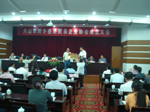 舟山市對(duì)外經(jīng)濟(jì)貿(mào)易企業(yè)協(xié)會(huì)在市外經(jīng)貿(mào)局和協(xié)會(huì)籌建工作小組的共同努力下,在市外經(jīng)貿(mào)企業(yè)的積極支持參與下,今天在這里召開(kāi)成立大會(huì)。首先,我代表市政府向大會(huì)表示熱烈地祝賀!并衷心感謝籌建工作小組的積極工作和外經(jīng)貿(mào)企業(yè)的積極參與!